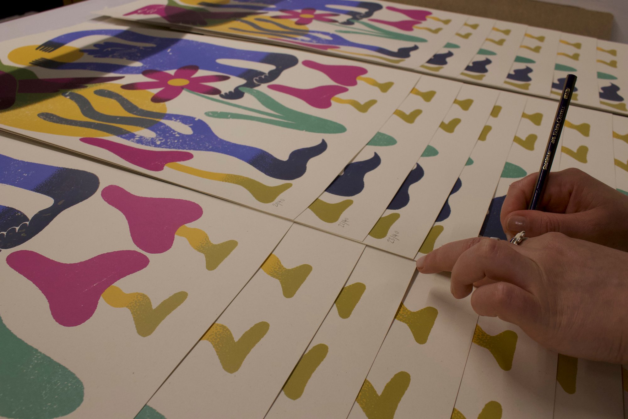 Five colour screen print onto Woodstock Betulla 270gsm